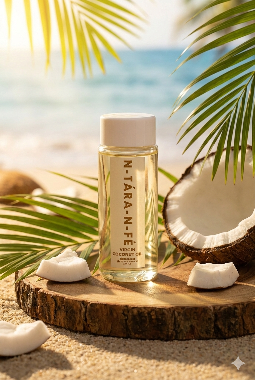 Inspired by the sun-drenched shores where the palms meet the sea, N-TÁRA-N-FÉ Virgin Coconut Oil is more than just a moisturizer—it’s a ritual. Cold-pressed to preserve every vital nutrient, our “liquid gold” melts into your skin, leaving behind a velvety glow and the faint, sweet scent of a tropical breeze. No additives, no shortcuts—just pure, island-grown restoration for your hair and body.